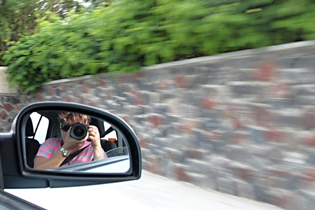 Jeli jsme dost nebezpečnými úseky, silnice se klikatila vysoko na útesech, pod námi srázy 300 m do moře. Tak abych se nemusela dívat před sebe, na to, co mě čeká, blbla jsem s foťákem za jízdy a tak vznikl tenhle můj autoportrét :-)